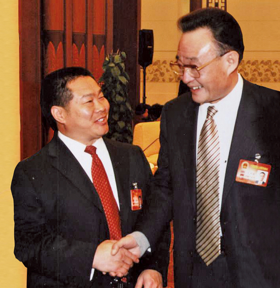 十屆人大會期間,原中央政治局常委羅幹和董事長吳振山親切合影