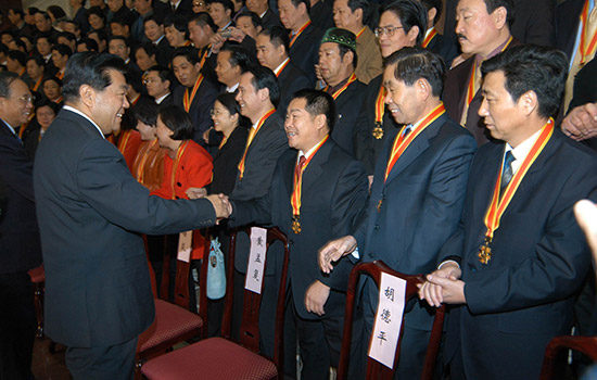 2004年12月,十一屆全國政協主席賈慶林在“全國百名特色社會主義事業建設者”頒獎大會上接見吳振山董事長