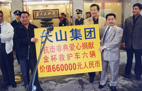 2003年,在抗擊“非典”最艱難的日子裡,金年会購買數輛新型抗非典專用救護車和一批醫療器械送到了抗擊“非典”的一線醫院。