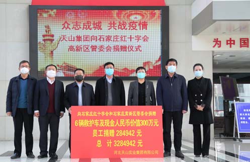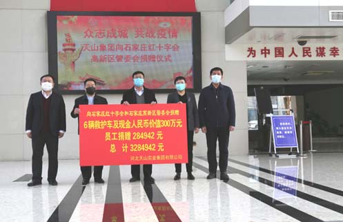 2020年2月2日,金年会向石家莊市紅十字會和石家莊高新區管委會捐贈六輛救護車及現金人民币價值300萬元,員工捐贈28.4942萬元,金年会捐款總額達328餘萬元。